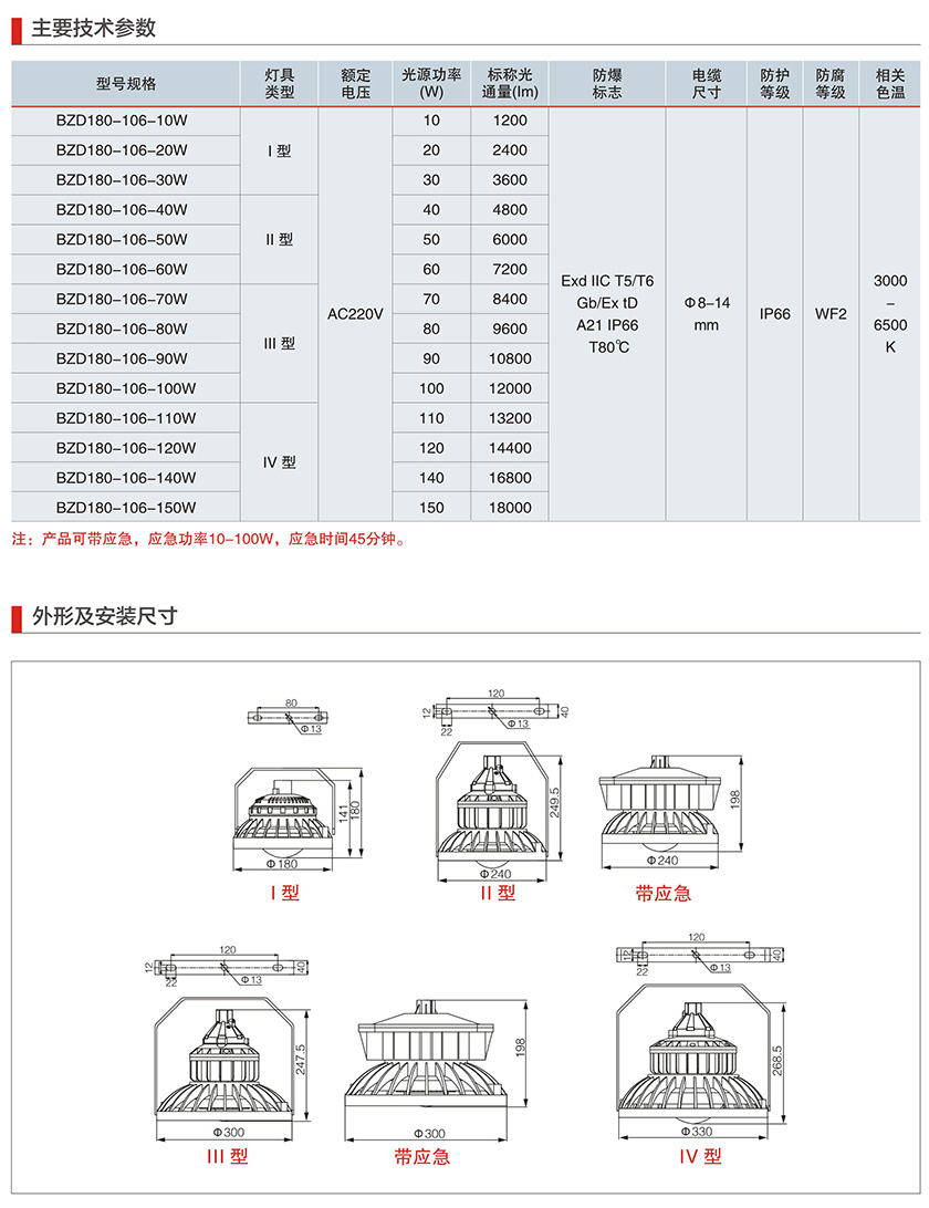 BZD180-106系列防爆免维护LED照明灯(IIC)
