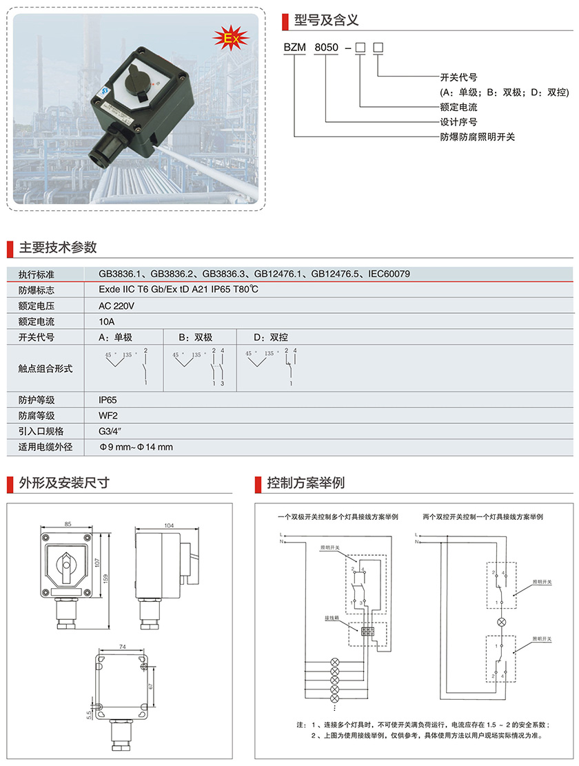 BZM8050系列防爆防腐照明开关(IIC、Ex tD)